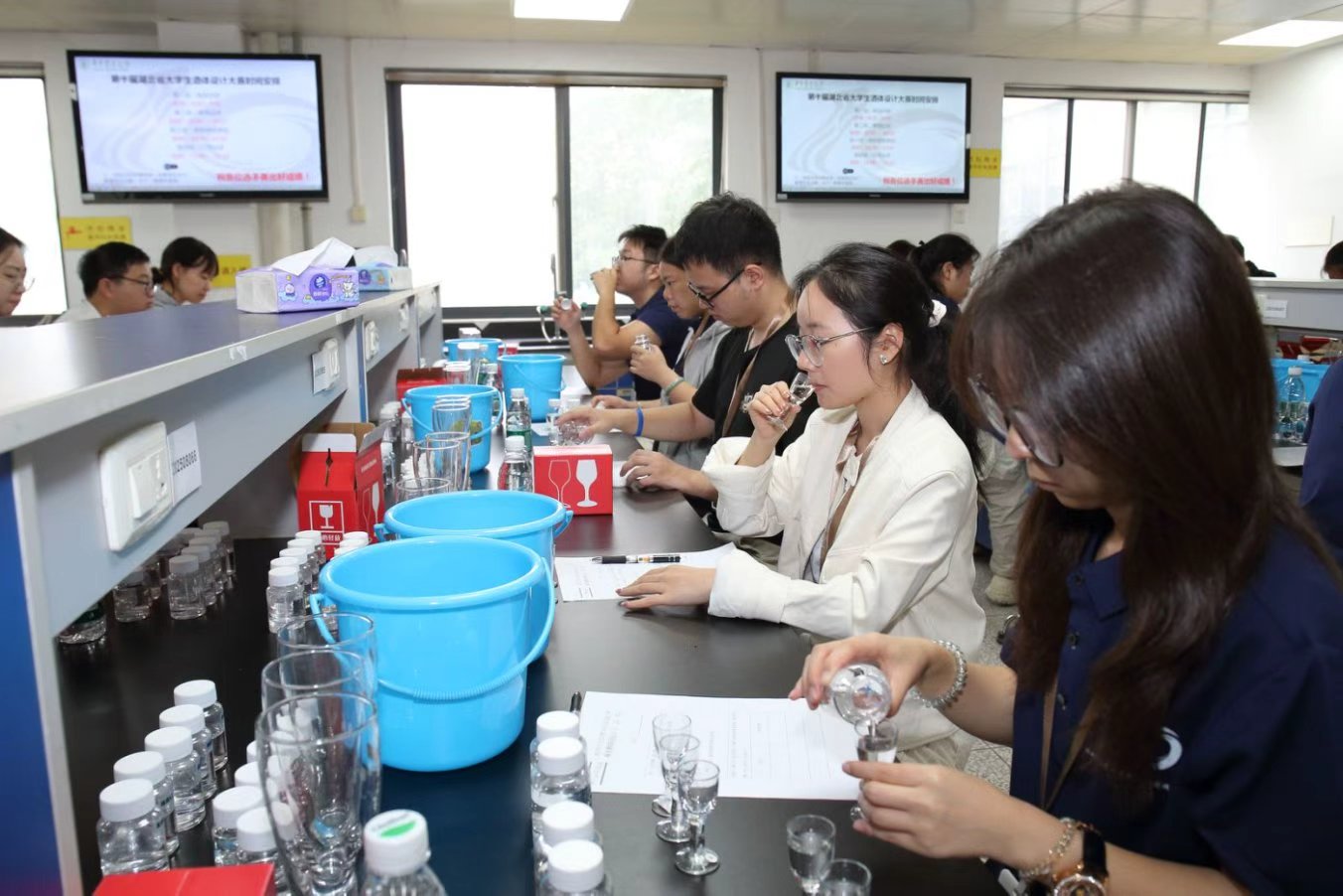 大赛设有酒体设计、味觉识别、啤酒“三杯法”等五大竞赛项目。酒体设计项目要求选手以市场需求为导向,运用感官鉴评与科学分析设计产品配方;实操项目则需在20分钟内完成现场考核。面对高强度挑战,中德啤酒学院学子沉着应对、精准操作,充分展现了学院在酒类专业教学领域的雄厚实力。