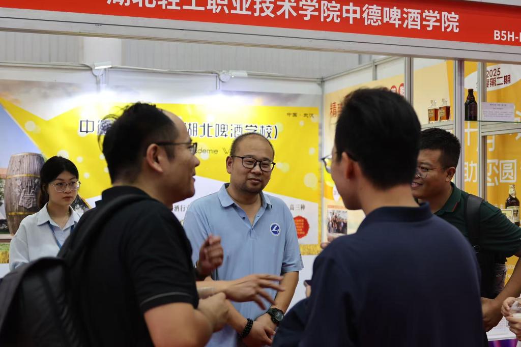 从开展到落幕,湖北轻工职业技术学院的展位前始终人头攒动。无论是参展观众询问探讨精酿啤酒的酿造工艺,还是酒企代表主动交流人才培养合作方向,都让这所唯一参展的高职院校成为了酒博会上独特的“职教观察点”。通过参展搭建校企对接窗口,直观捕捉行业人才缺口与技术革新方向,进一步缩短人才培养与产业需求的距离,在如此规模宏大、主题鲜明的酒博会上,湖北轻工职业技术学院为职业院校如何精准服务产业发展提供了可借鉴的路径。未来,随着该校持续依托中德合作优势深耕酿酒技术人才培养,相信会有更多兼具理论与实操能力的毕业生走进酿酒行业,为酒业市场化转型注入更多职教动能。更令人动容的是,该校众多毕业校友专程从各地赶来展会现场,与在校师生围绕当前啤酒市场发展趋势、低度酒与特色风味酒的技术创新难点、企业人才需求标准等行业热点话题展开深度交流。校友们的交流不仅为在校师生带来了行业最新动态和宝贵经验,也为校友之间的合作与资源共享提供了契机,进一步促进了学校与行业的紧密联系。热烈的互动氛围不仅彰显了该校深厚的办学底蕴,更体现出强大的校友凝聚力。同时,该校推出的精酿酒师培训项目及啤酒高级酿造工职业资格认证培训,激发了现场社会人士及行业从业者的浓厚兴趣。面对大家的咨询,该校师生耐心细致地解答了培训内容、师资力量、就业前景等相关问题,充分印证了社会对于高质量专业技能培训的高度认可与迫切需求。