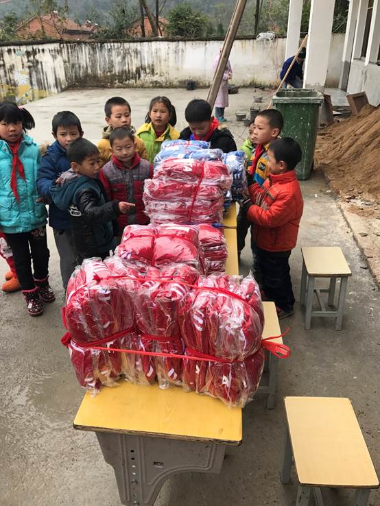 武穴市余川镇徐冲村是湖北轻工职业技术学院驻村扶贫工作点。徐冲村既是山区,耕地面积少,又是库区,因水源保护养殖业发展困难,特殊的地理位置造成经济发展不便。为了缓解生活压力,大多数村民都选择外出打工,以致在校70名学生中大多数都是留守儿童,隔代看管。中德啤酒学院党总支的领导和老师们从精准扶贫工作队队长王正平主任那里了解到这一情况后,在本院发起了“扶贫济困献爱心,和谐社会暖人心”的募捐活动,并得到了中德啤酒学院教职工的热烈响应,老师们纷纷捐款,并用本次募集的善款为徐余冲小学的每位学生购置了一套校服,希望能够资助大家温暖过冬,鼓励大家更好地学习。