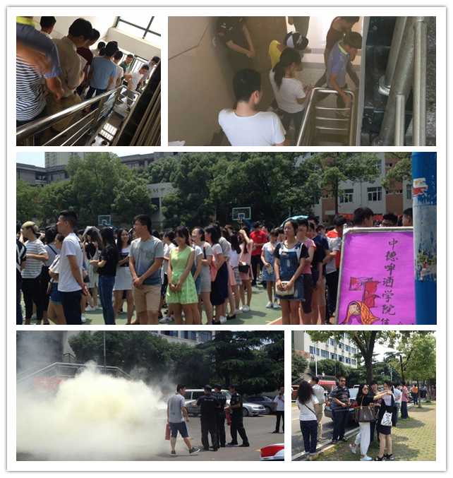 当日中午11点左右,教学楼突然响起了火灾警报铃声。在听到这突然响起的警报铃声后,有部分同学感觉茫然,但在各班班主任、任课教师、班长及班委成员的组织下,同学们选择了人员较少的南边安全楼梯,迅速下楼。虽然我系楼层所在位置较高,但同学并没有惊慌失措,以极快的速度下楼并在指定位置集合。