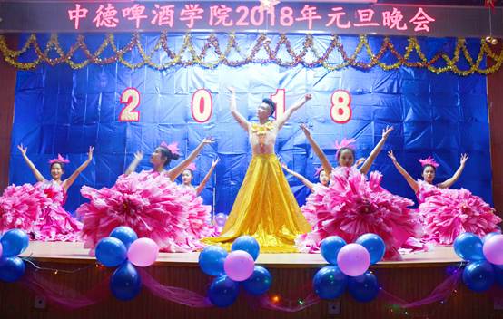 (中德啤酒学院郭卢云讯)2017年12月27日晚六点三十分,中德啤酒学院2018年“放飞梦想,扬帆起航”主题元旦晚会在学术报告厅举办。学校院长助理王峰松、校学工部部长艾发安、团委书记刘欢、中德啤酒学院院长程汉生以及教职工和学生300余人齐聚一堂,共同感受晚会的热闹。