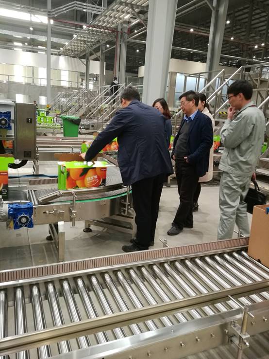 23日,农夫山泉果业生产运营李总,带领考察团队先后参观了农夫山泉果业信丰工厂及安远工厂,清洗线,风干线,分选线,装箱线,包装线,全套高效自动化机组,精准机械手臂,忙碌的生产现场显得井然有序,高效安全。