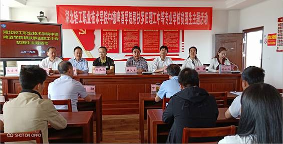 参加此次活动的有我校中德啤酒学院党总支书记程汉生、院长刘光成、党总支副书记陈敬春、校党办主任王晶等一行六人。此次帮扶活动受到罗田理工中等专业学校的高度重视,校长冯建明、校办公室主任方向阳以及相关年级老师前期做了精心的准备,罗田县教育局副局长胡咏梅、职教科主任贺君雄也应邀出席活动。