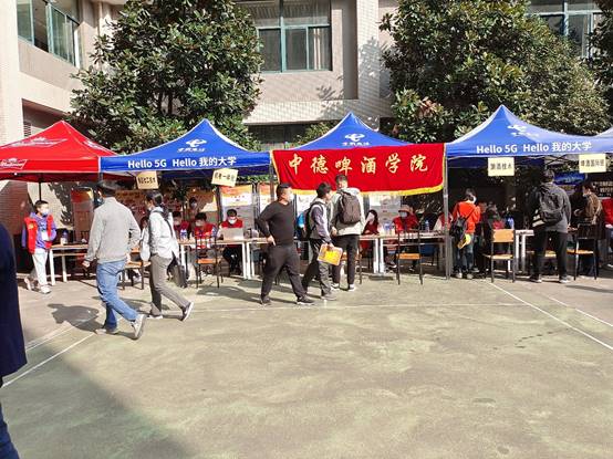 中德啤酒学院在羽毛球场设立的接待点