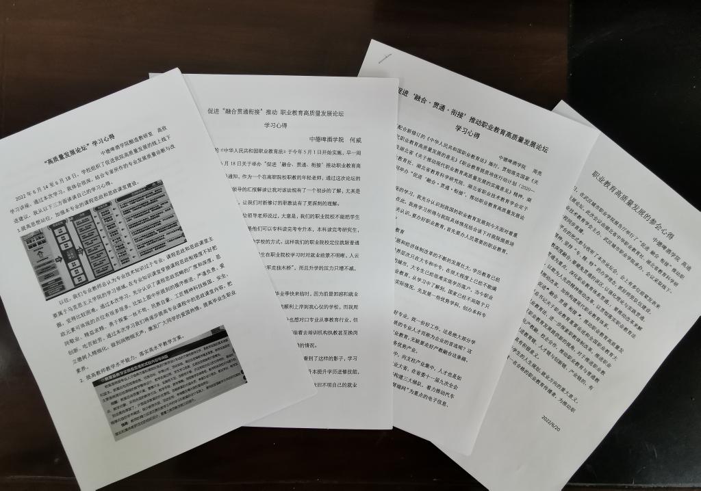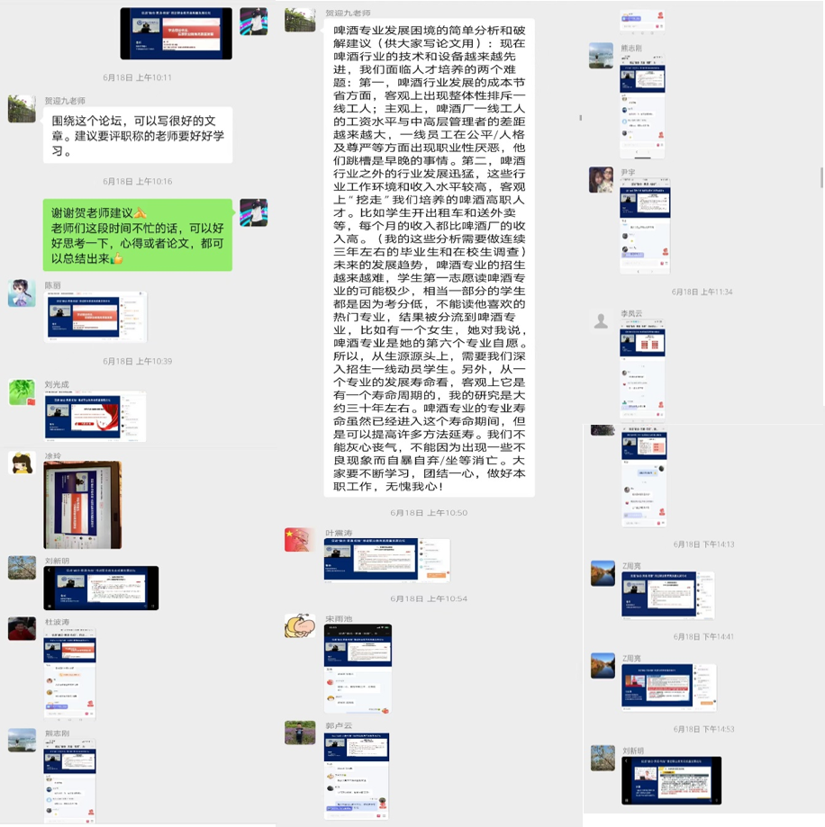 (中德啤酒学院 贺迎九讯)2022年6月18日,湖北轻工职业技术学院中德啤酒学院的教师们在线上参加了“促进‘融合•贯通•衔接’, 推动职业教育高质量发展论坛”的学习。
